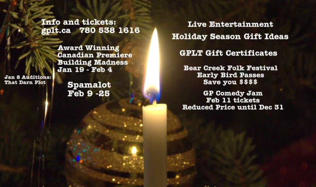 The Gift of Live Theatre! GPLT Gift Certificates! Building Madness by Kate Danley, Jan 19 for 9 performances. Award winning Farce! The Canadian Premiere! Spamalot, Lovingly Ripped Off from Monty […]