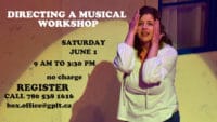GPLT is hosting a Directing a Musical workshop from 9 to 3:30 pm on Saturday June 1. It is FREE and we provide snacks and a free lunch.