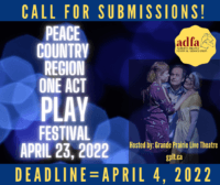 Is there a one act play you have always wanted to produce? Need an outlet for your own new play? New at directing and want to try your hand at a smaller script? Enter the Alberta Drama Festival Association Peace Region One Act Play Festival! Hosted by the Grande Prairie Live Theatre on Saturday April 23, 2022.