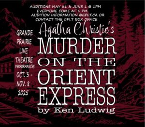 Everyone who wants to audition for Murder on the Orient Express is asked to come at 1 pm on either day. This will be a group audition.