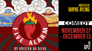 By Kristen Da Silva “Grande Prairie Live Theatre’s third play of our 63rd Season” What happens when friendship is broken and turns into a bitter rivalry? 5 Alarm is about this and more! Hot Chili, healing, and friendship come together in this heartwarming comedy. A fairground in Killaloe, Ontario is home to the annual Wayne Rose […]